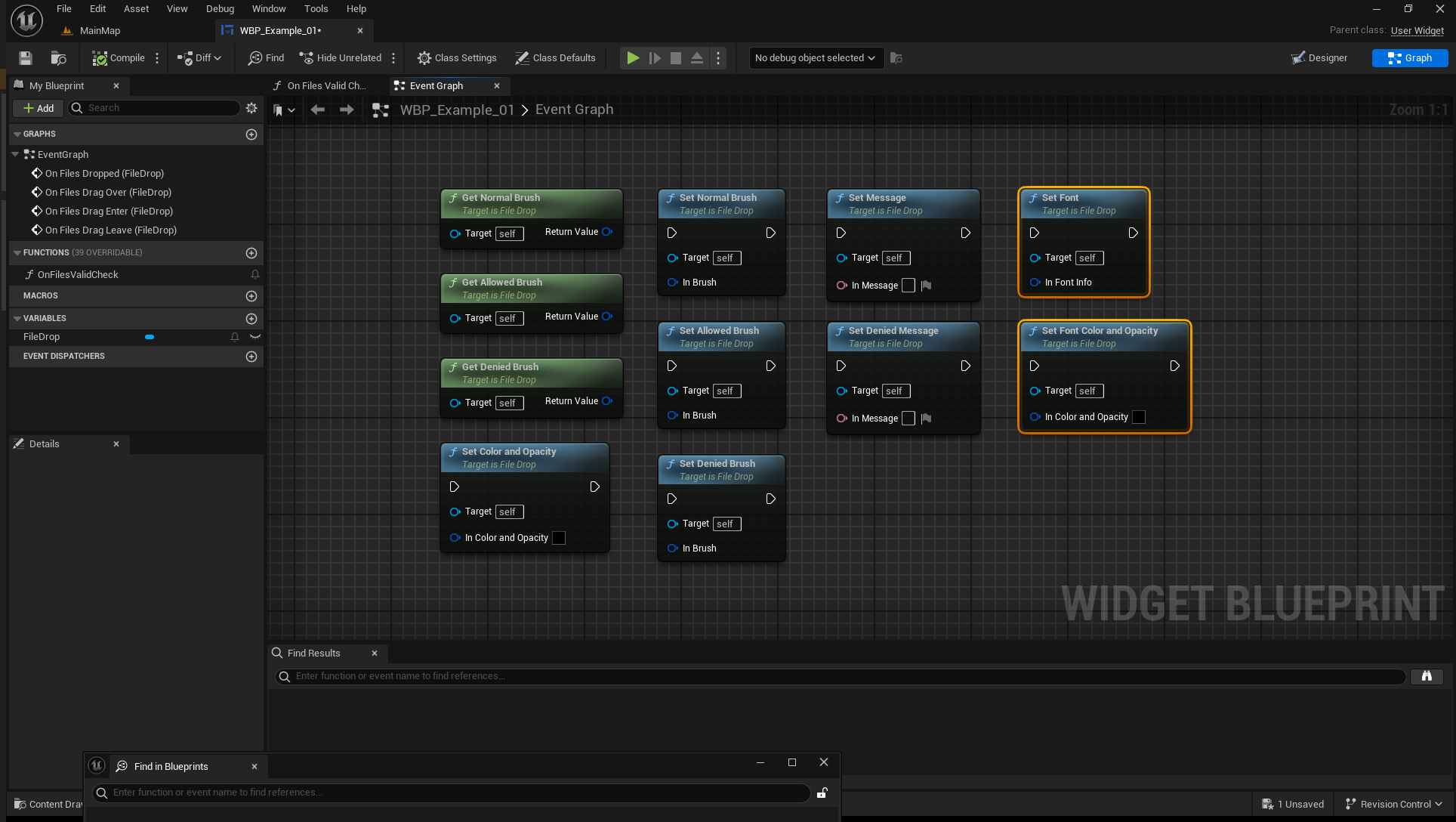 - Slate and UMG Widgets: Includes both a C++ Slate widget and UMG components to support file drop functionality in various parts of your project.