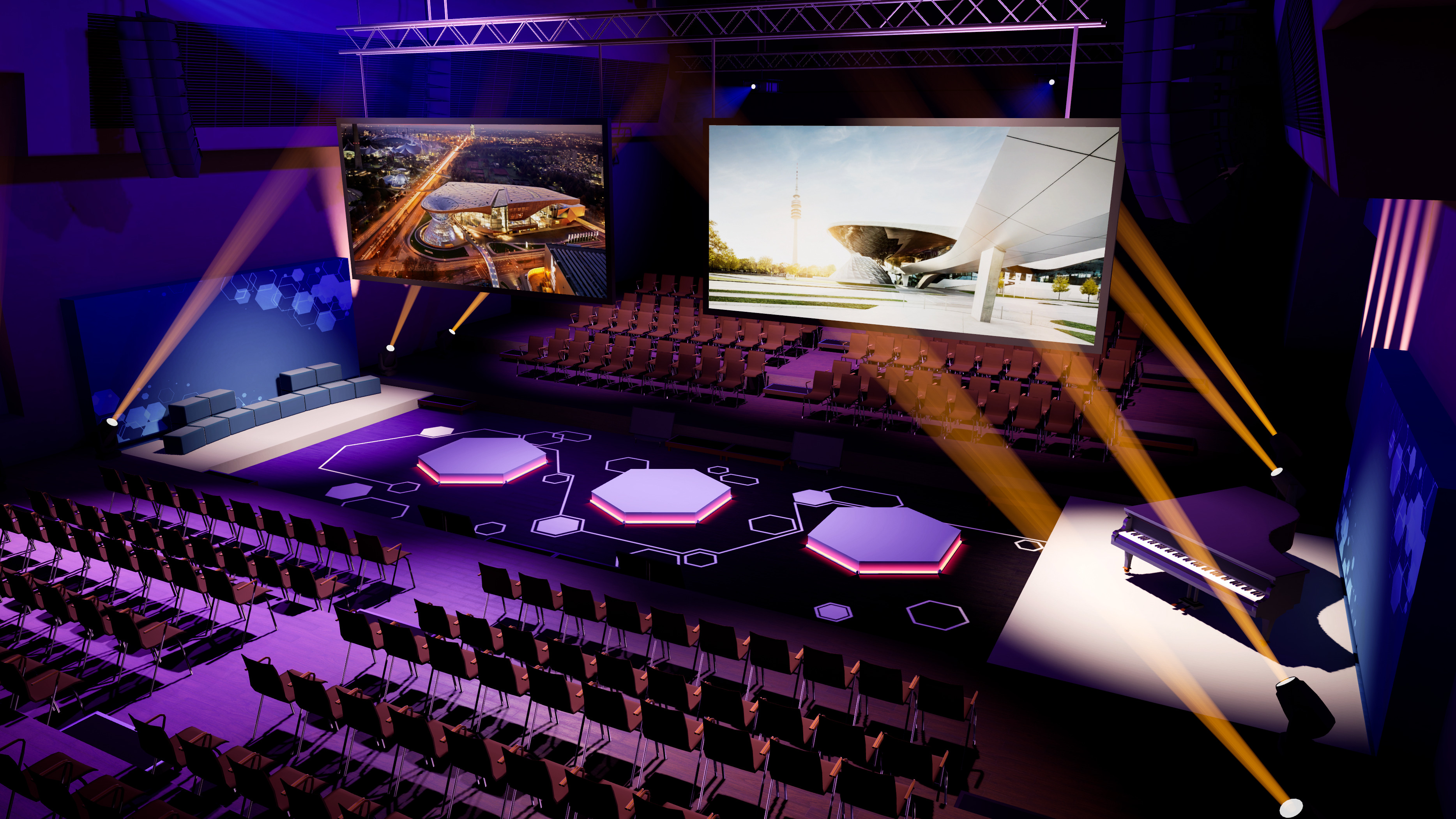 For the presentation of a rentable event space, there was a need for a mobile, trade show-ready solution to engage customers and showcase the space options. The VR experience was developed using the Unreal Engine for the Oculus Quest. The associated iOS app is used to control the VR Experience and thus manage the customer journey via iPad. The VR application is ideally suited to demonstrate the event space with its advantages and convertibility to potential customers.